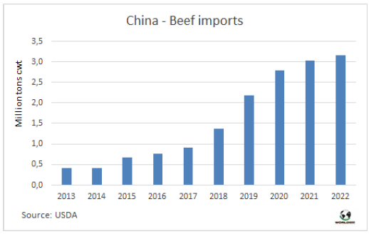 中國(guó)牛肉進(jìn)口量平穩(wěn)增長(zhǎng)