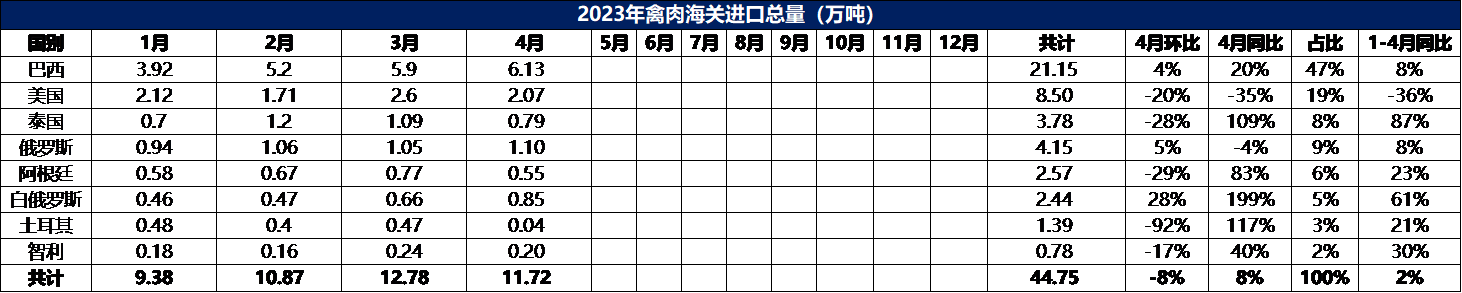 2023年4月冷凍禽肉進口數(shù)據(jù)