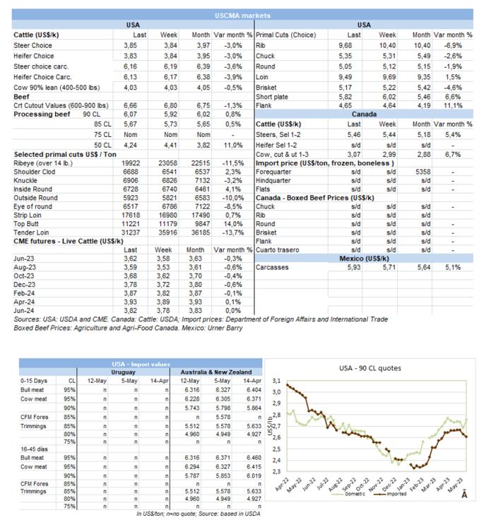 國內(nèi)市場在5月上半月結(jié)束時,在慶祝母親節(jié)的推動下,銷售的比較好。圣保羅的普通肥牛的交易價格為R$255,而中國肥牛的交易價格為R$265。