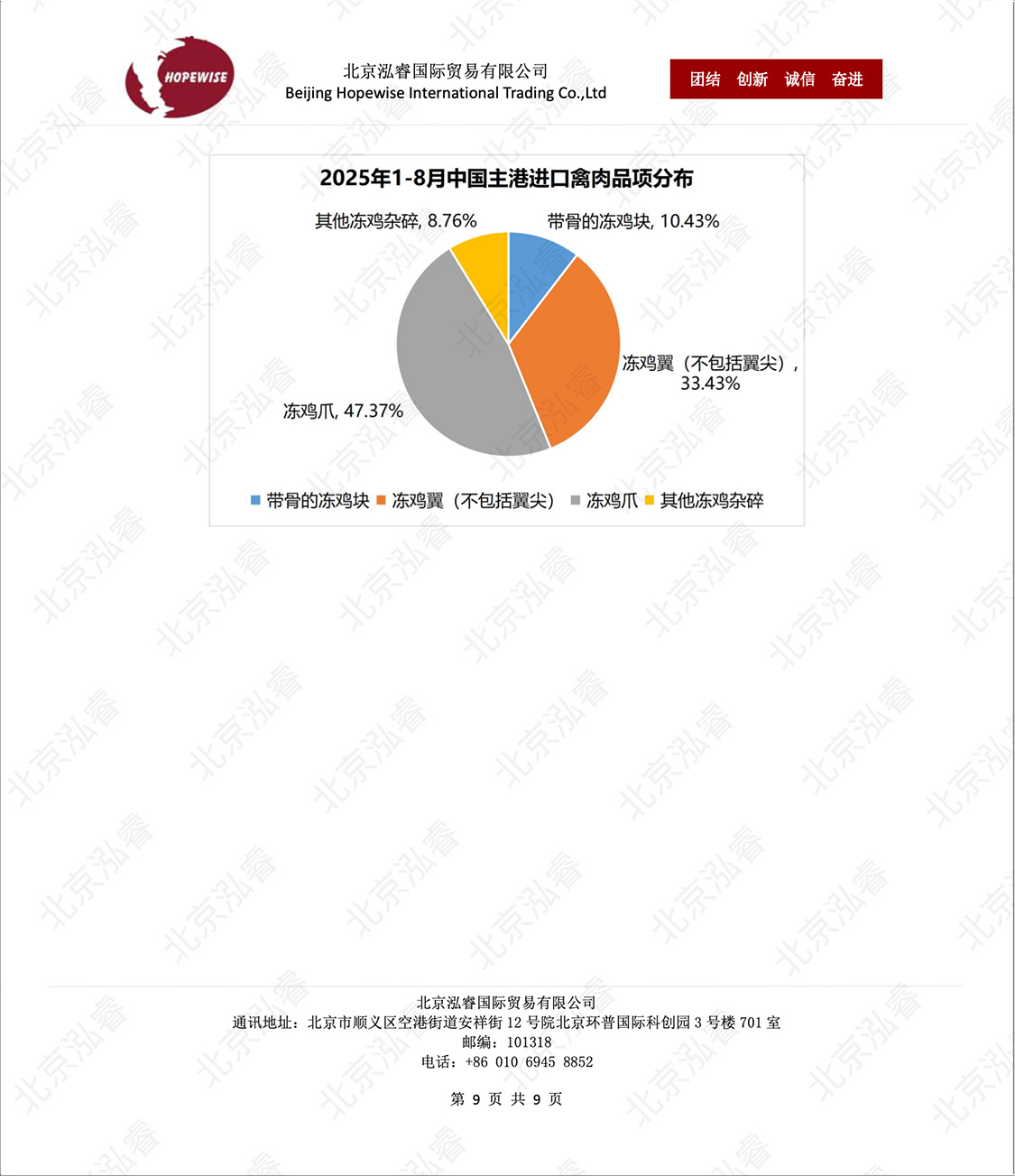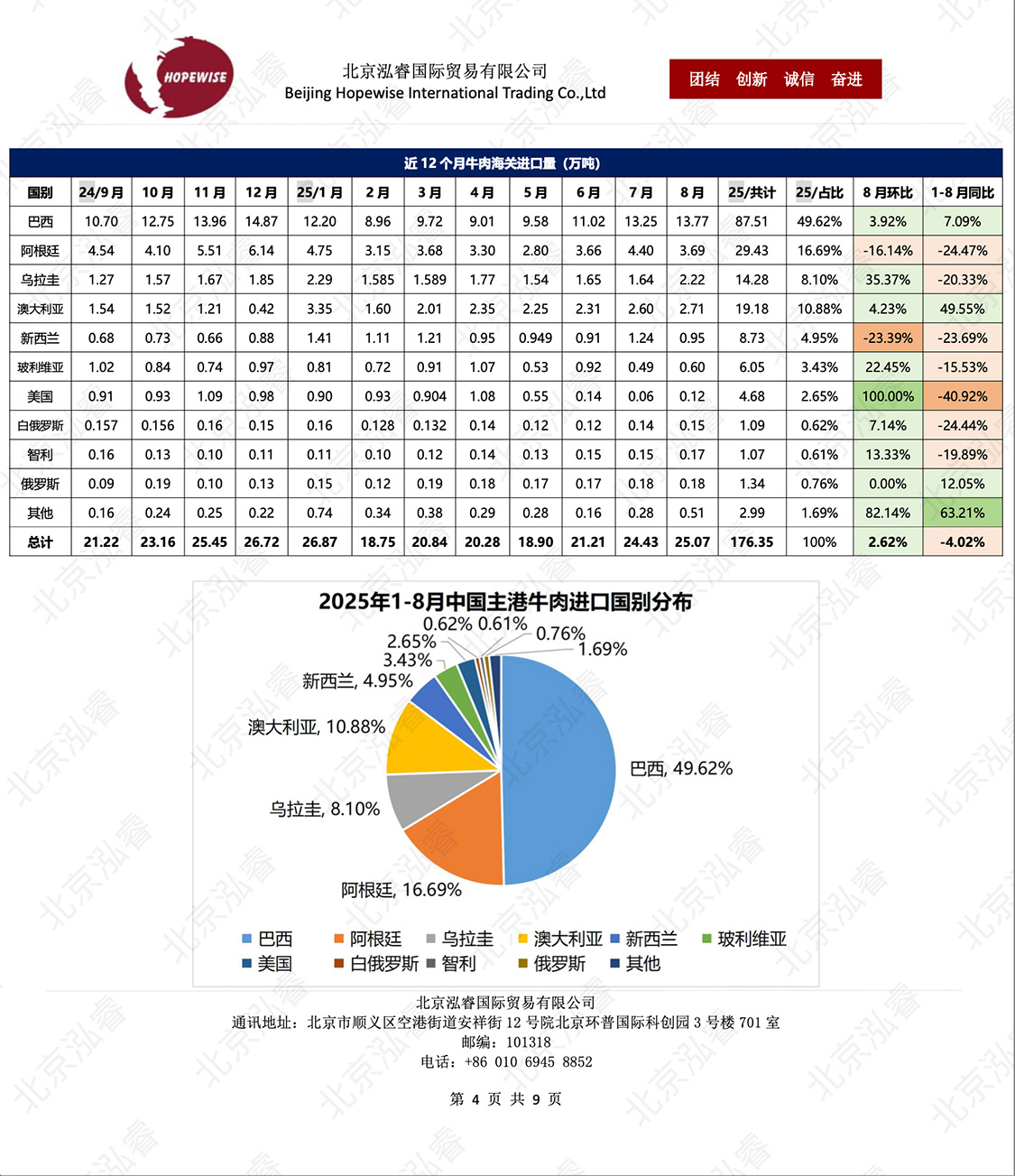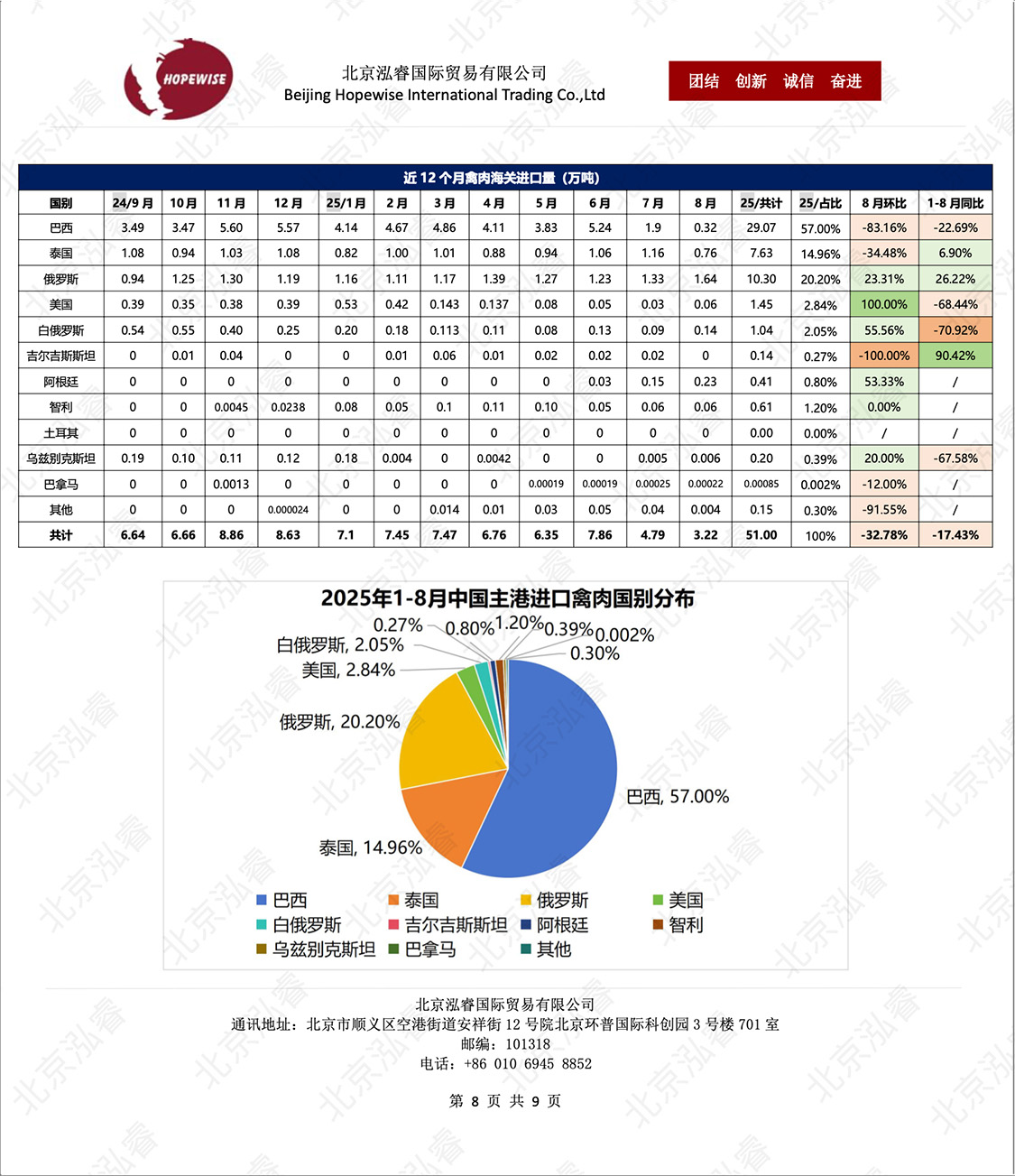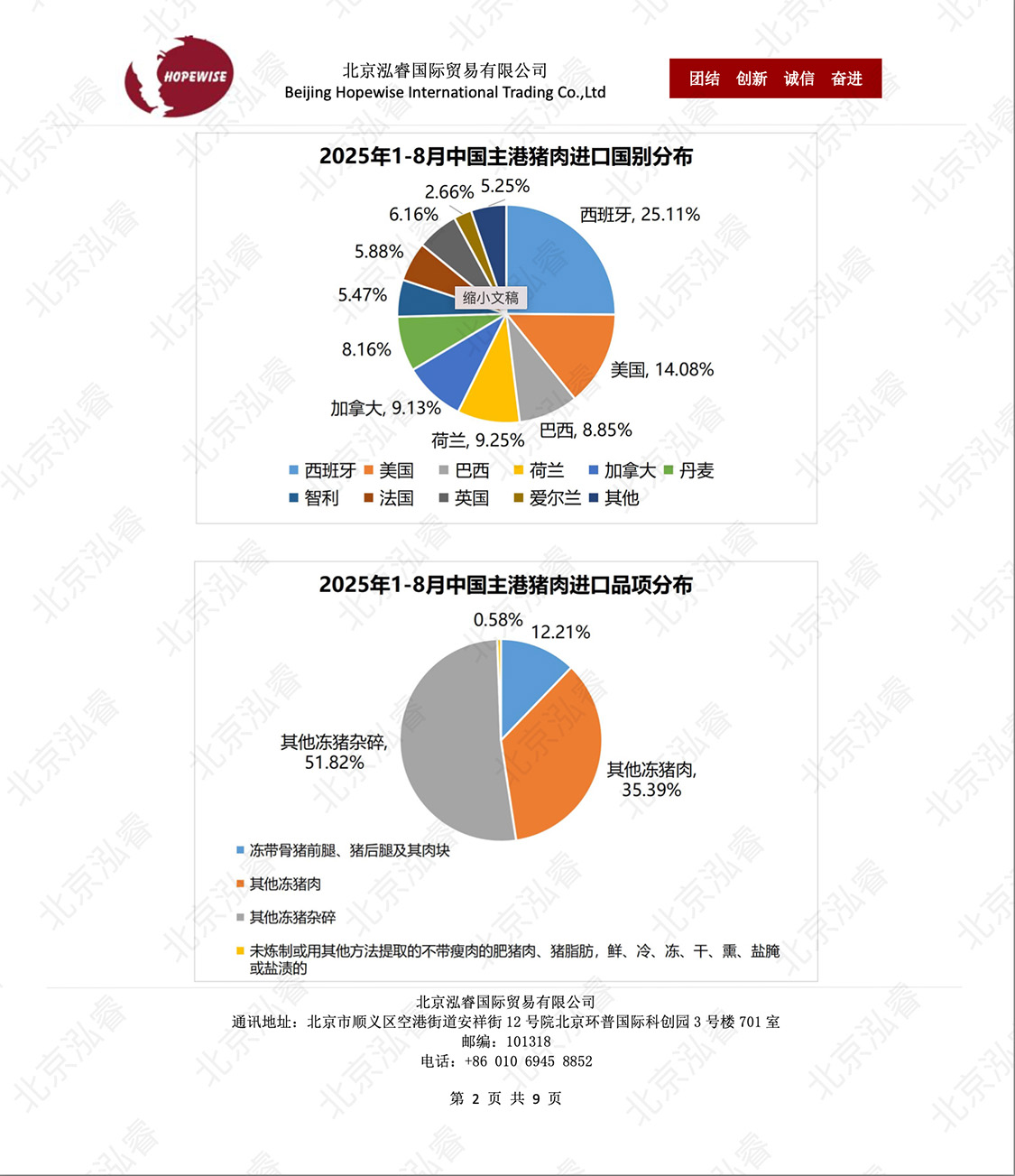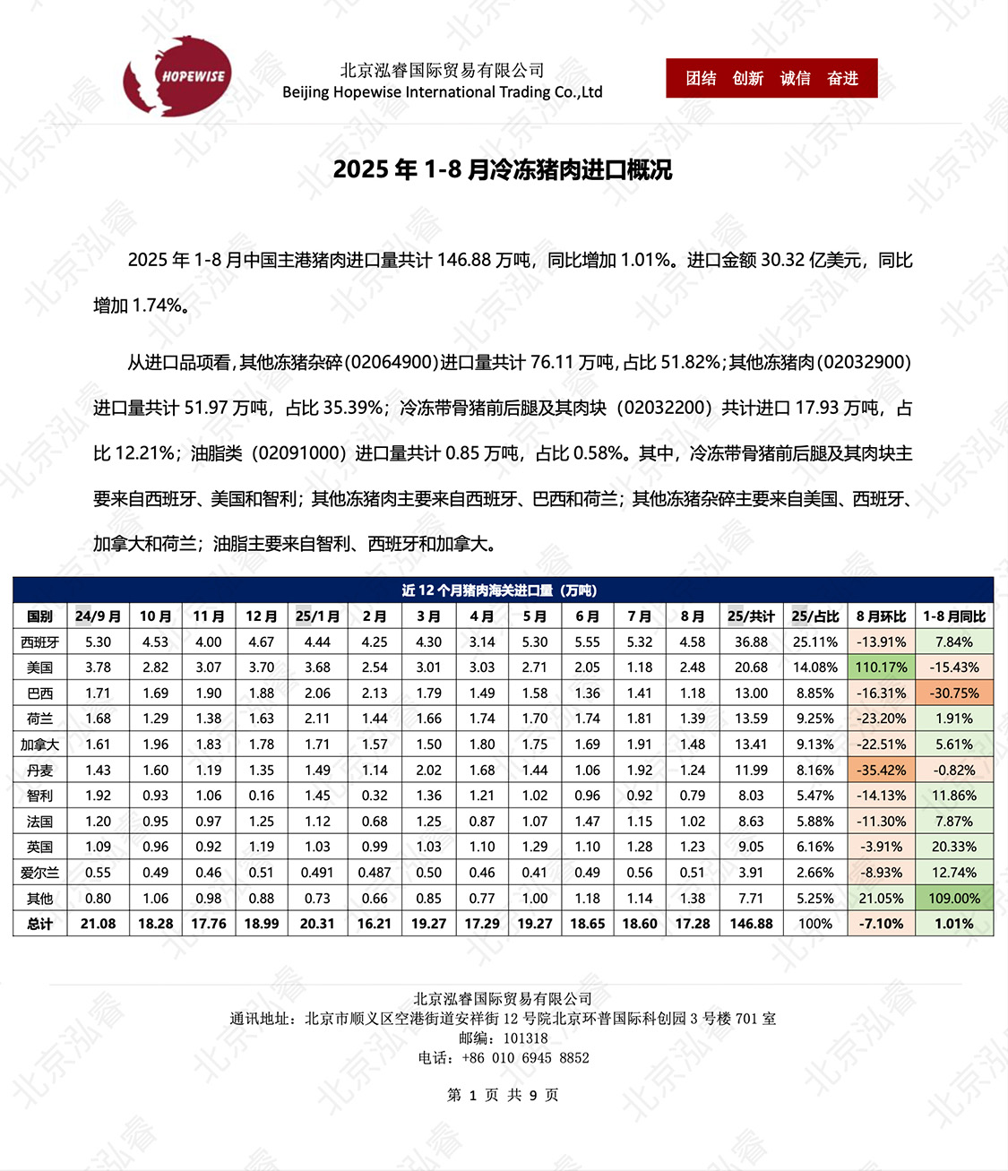 2025 年 1-8 月冷凍豬肉進(jìn)口概況
