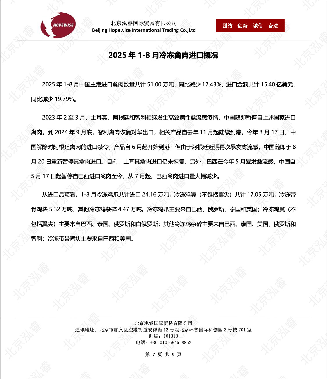 2025年1-9月冷凍豬牛禽肉海關(guān)進(jìn)口數(shù)據(jù)