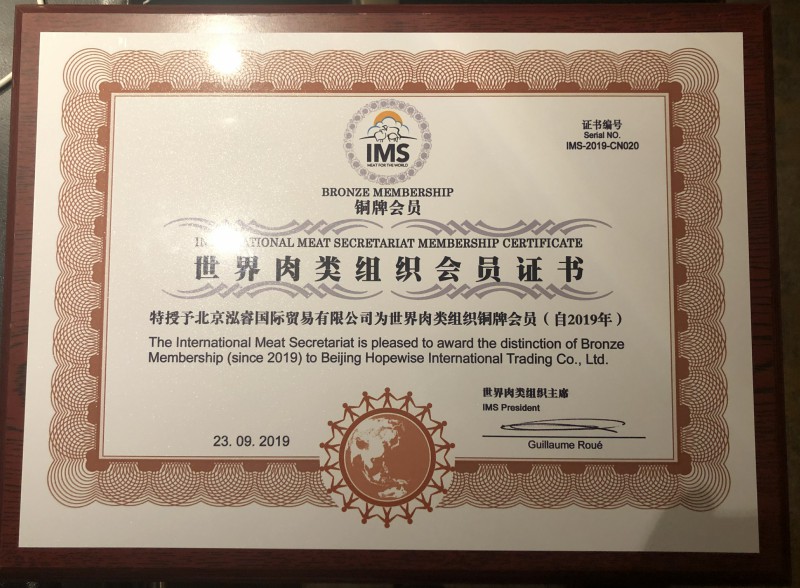 9月23日,北京泓睿國際貿(mào)易有限公司成功加入世界肉類組織并成為銅牌會員。