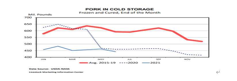 由于德爾塔變異病毒影響,市場整體低迷,消費受限,豬肉庫存消耗緩慢,預計8月豬價持續(xù)低位徘徊。