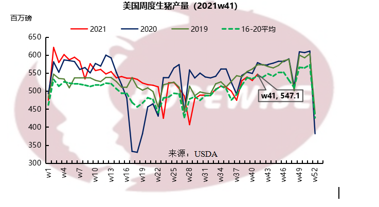 美國9月生豬均價(jià)0.83美金/磅,環(huán)比下滑15.45%,同比上漲47%。豬胴體價(jià)格1.07美金/磅,環(huán)比下滑10.47%,同比增長26.97%。生豬價(jià)格處于季節(jié)性下滑階段。9月最后一周,豬各部位肉的平均批發(fā)價(jià)格與6月中旬達(dá)到的年度峰值相比下降約20%。雖然生豬產(chǎn)量有增加,仍低于去年同期水平。9月周度生豬屠宰量246.08萬頭,環(huán)比增加2.13%,同比減少3.04%。生豬周度產(chǎn)量23.32萬噸,環(huán)比增加1.96%,同比減少3.36%。