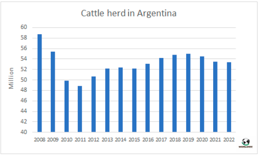 政府報告稱,截至2021年12月,活牛存欄量為53416435頭,比2020年底減少約10萬頭(減少0.2%)。這一數據被執(zhí)政黨解釋為“平衡局面”,因為在過去的兩年里,存欄下降了 150萬頭,其中近90萬頭是母牛。