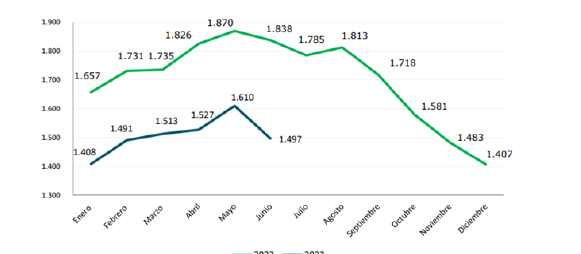 根據(jù)巴西環(huán)境與分析研究所上周發(fā)布的數(shù)據(jù)顯示,由于季節(jié)性調(diào)整,5月份的零售額比4月收縮了1%。與2022年5月相比,零售額也下降了1%,遠(yuǎn)低于分析專家關(guān)于1.6%復(fù)蘇的預(yù)期。預(yù)計(jì)7月份出口量將低于16萬噸。上周牛肉出口達(dá)到3.925萬噸,周增長5.01%。7月前十個(gè)工作日,牛肉出口約7.663萬噸,平均0.766萬噸/天,比2022年7月的日均水平低3.72%。Agrifatto稱:“通常情況下,前兩周的出貨量是最大的,7月迄今為止的統(tǒng)計(jì)數(shù)字表明,本月16萬噸的出口預(yù)期很難完成。