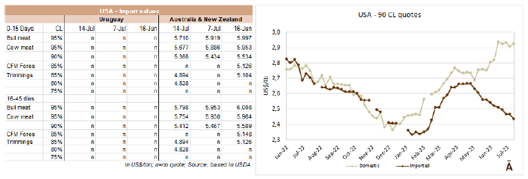 與前一周相比,進(jìn)口牛肉價(jià)格大幅下跌,交易適中。較低的進(jìn)口價(jià)格使其對進(jìn)口商更有吸引力。根據(jù)美國農(nóng)業(yè)部的每周報(bào)告,盡管有價(jià)格優(yōu)勢,但一些最終用戶仍然不愿轉(zhuǎn)向肉類進(jìn)口。