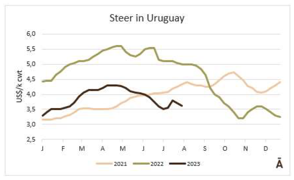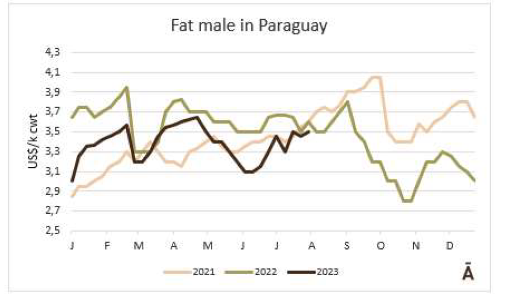 盡管一些工廠從上周開拾堅(jiān)持以低的價(jià)格支付,但巴拉圭的價(jià)格基本上保持不變,普通公牛每公斤胴體重量約3.50美元,肥牛約3.10美元。