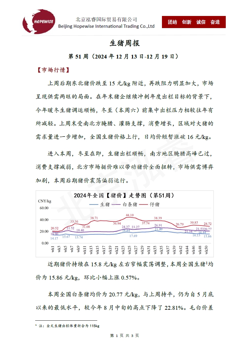 生豬周報(bào)第51 周(2024 年12月13 日-12 月19 日)
