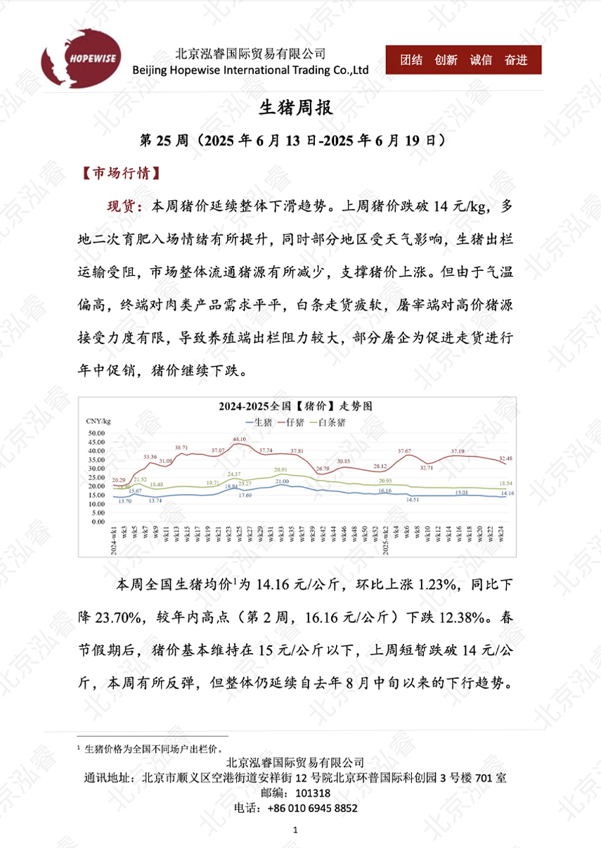 生豬周報(bào) 第 25 周(2025 年 6 月 13 日-2025 年 6 月 19 日)