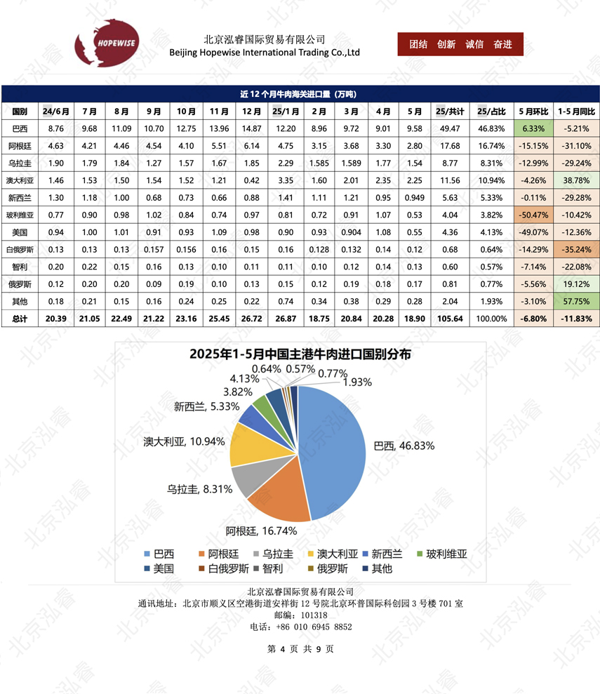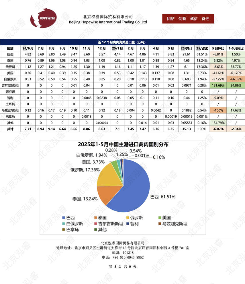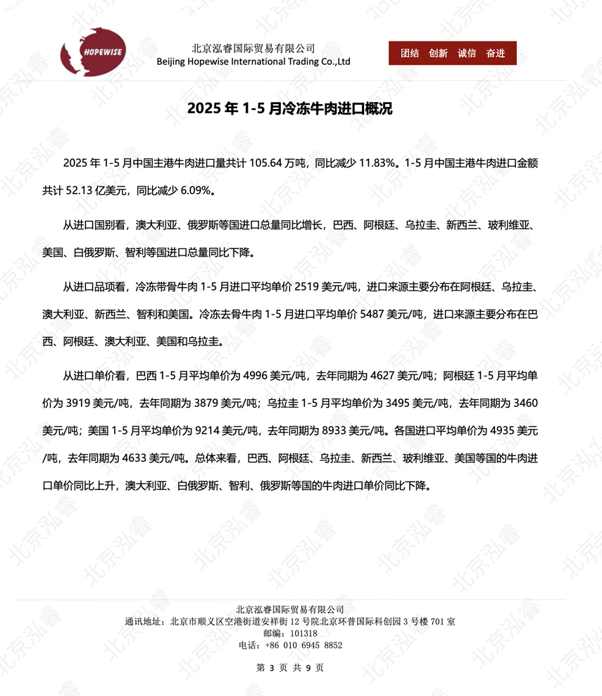2025年1-5月冷凍豬牛禽肉海關進口數據