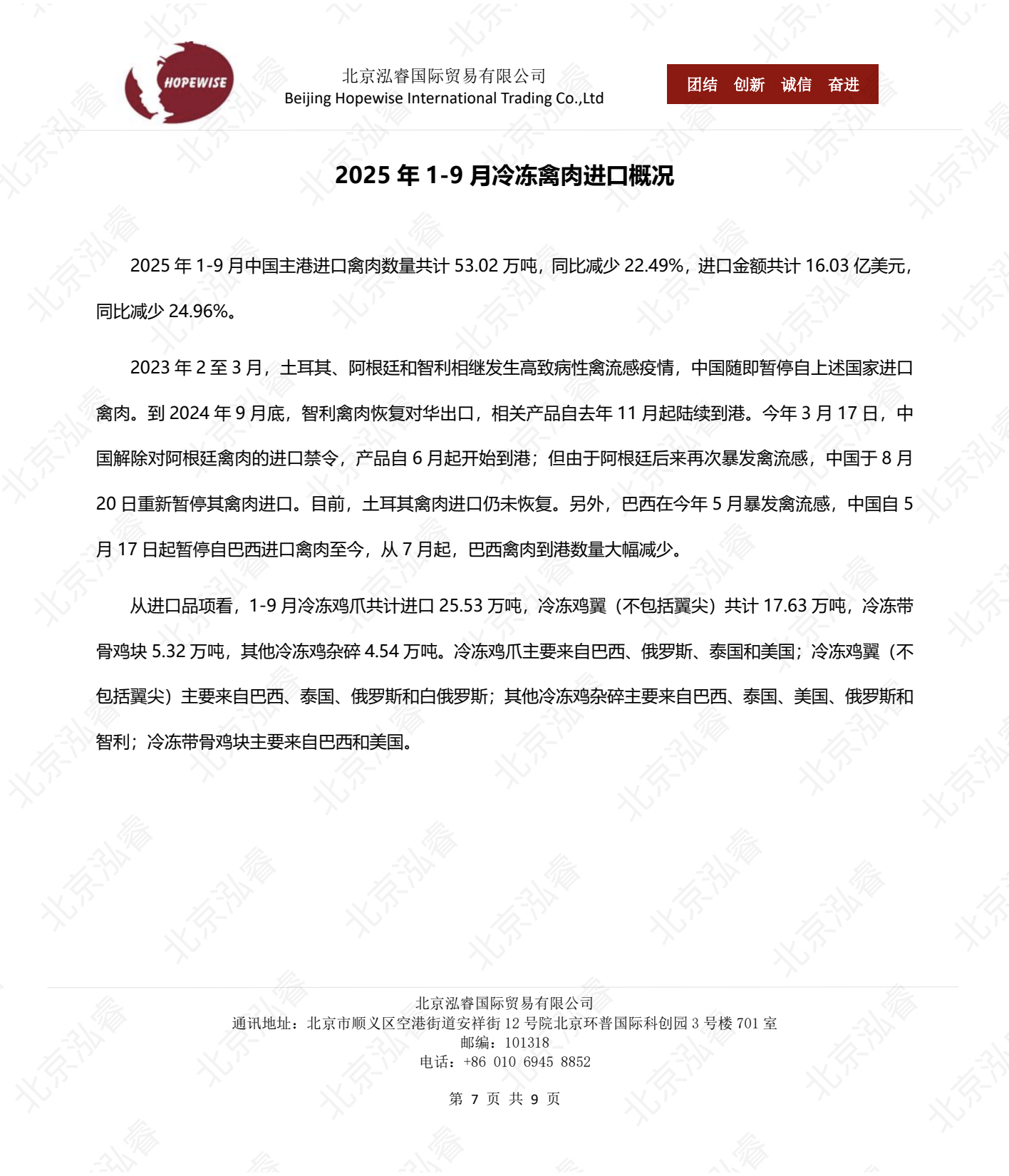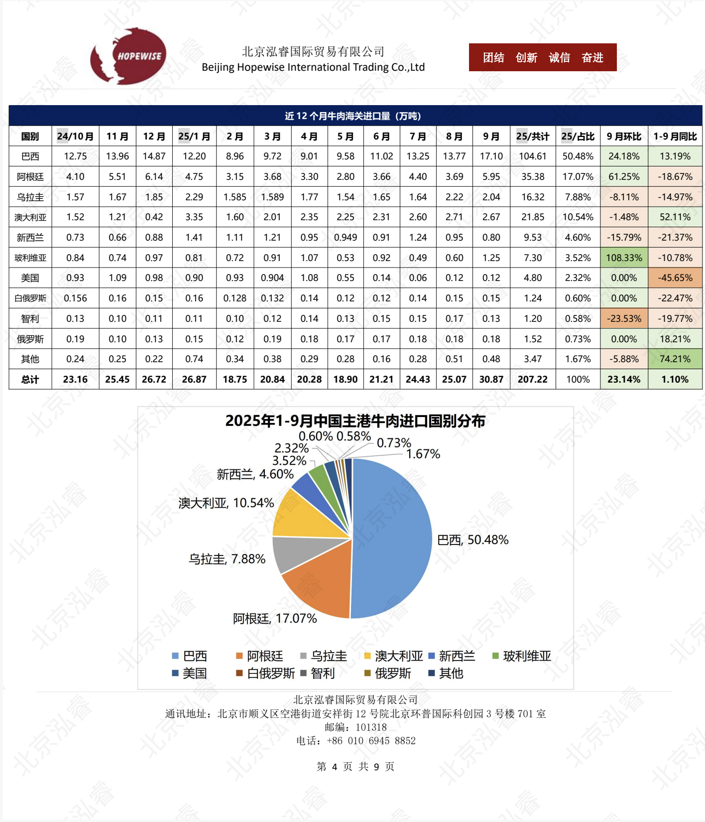2025年1-9月冷凍豬牛禽肉海關(guān)進口數(shù)據(jù)