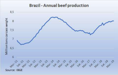 巴西第一季度牛肉產(chǎn)量增加2.7%