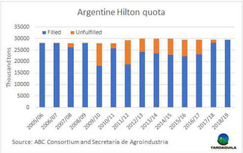 近十年來阿根廷第一次完成希爾頓配額