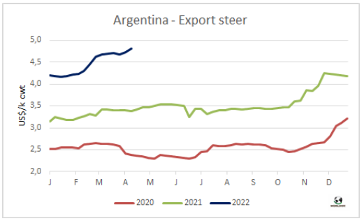 四月初牛肉出口平均價(jià)格持續(xù)上漲