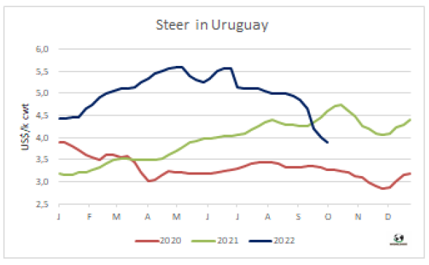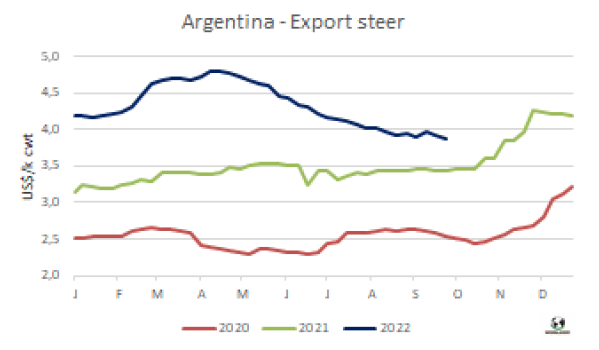 出口閹牛價(jià)格下跌了5比索,質(zhì)量較好的牛例外