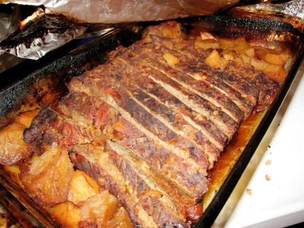 那具體怎么烹制呢?首先剔除多余的脂肪,然后用口急汁、鹽、黑胡椒碎、牛至葉等均勻涂抹于牛前胸肉,然后用錫紙包裹起來(lái)進(jìn)行腌制一夜,烤制前還可用針管注入由牛肉湯、黃油、醬油等調(diào)的醬汁,然后放在炭火上,加果木,以120℃-125℃烤,熏烤期間可噴適量蘋(píng)果醋,熏烤八九個(gè)小時(shí)后,取出前胸肉,用錫紙包裹好再放入烤爐中。包裹錫紙一是為了減少牛前胸肉內(nèi)部水分流失,二是使熱量集中,節(jié)省烤制時(shí)間。