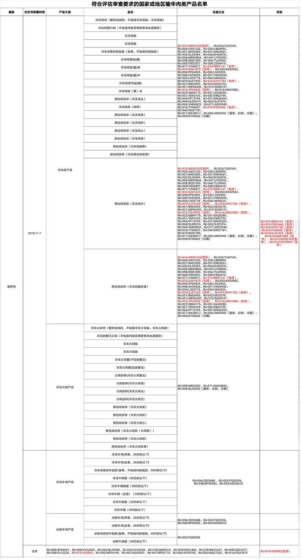 符合評(píng)估審查要求的國(guó)家或地區(qū)輸華肉類產(chǎn)品名單(2023年6月21日更新)