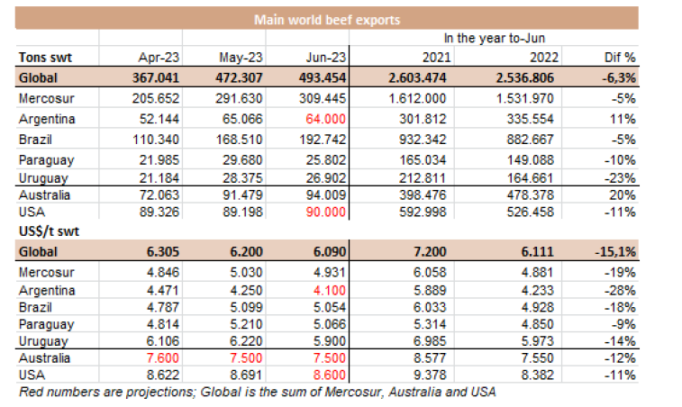一位巴西出口商補充說,在5月底至6月初期間,“有大量肉類庫存”,但他保證“7月出口量將大幅下降”。