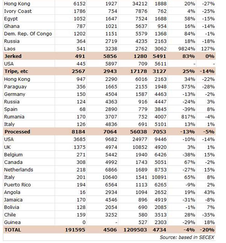 在WBR的最新報(bào)告中,公布了截至7月的月度出口表,其中新鮮牛肉的總出口存在錯(cuò)誤。下面是正確的圖表。