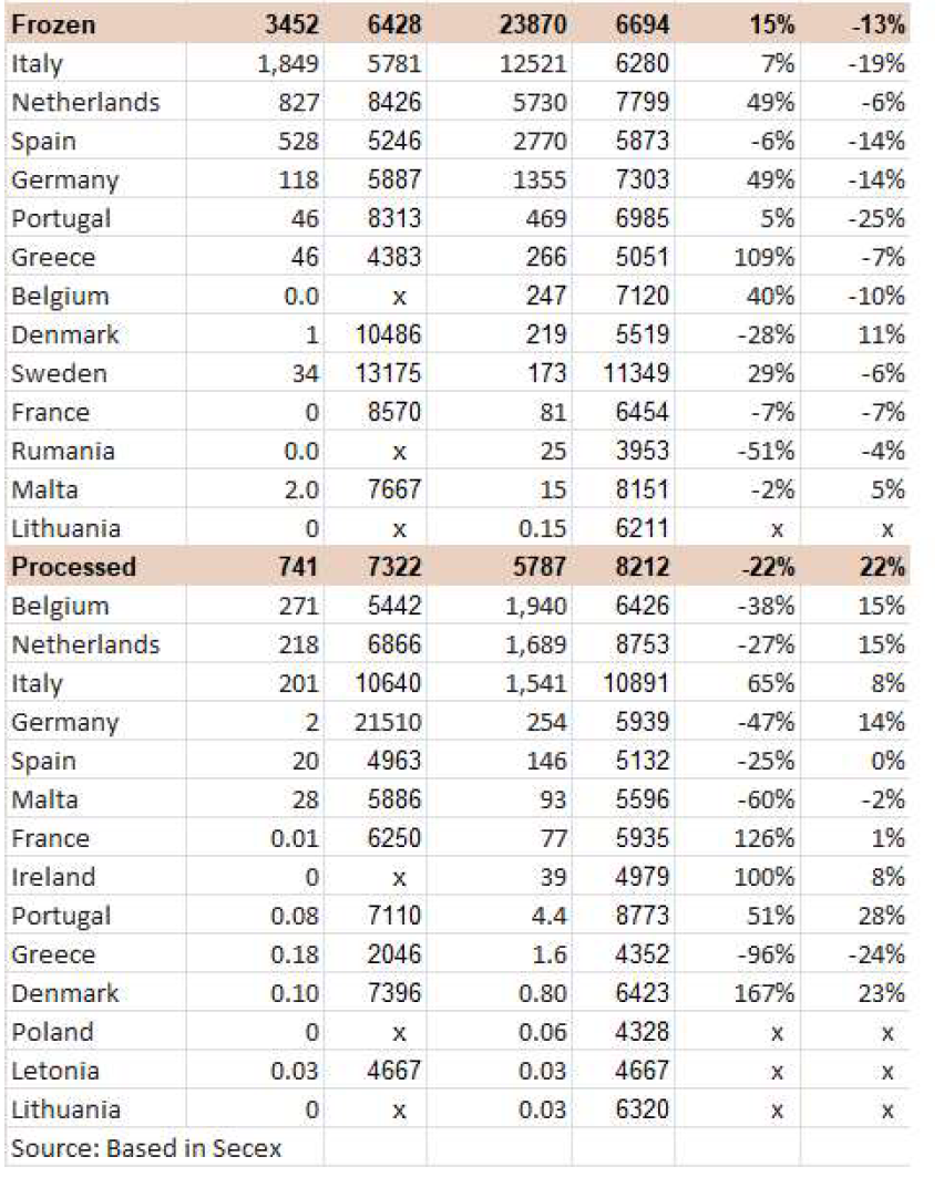在下周日阿根廷(Paso)初選前幾天,牛屠宰量減少導(dǎo)致歐洲希爾頓價(jià)格瘋狂上漲(請(qǐng)看阿根廷)。上周末,阿根廷臀腰肉價(jià)格為FOB 13300-13700美元之間,而本周價(jià)格則達(dá)到了FOB 14000美元。一位貿(mào)易商稱:“本周我停止了購(gòu)買。歐洲需求并不能證明這些高價(jià)是合理的,肉類將在10月中旬抵達(dá),而10月中旬并不是假期?!?/span>據(jù)知情人士透露,烏拉圭利用歐洲進(jìn)口冰鮮市場(chǎng)的價(jià)格調(diào)整,希爾頓牛臀腰肉的價(jià)格達(dá)到12500-12800美元/噸。