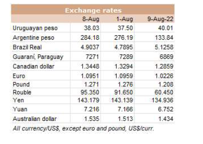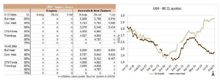 美國(guó)進(jìn)口市場(chǎng)無(wú)法維持上周的動(dòng)態(tài),對(duì)烏拉圭產(chǎn)品的需求和價(jià)格似乎都有點(diǎn)疲軟。根據(jù)一位貿(mào)易商的說(shuō)法,7天前90CL前部位肉達(dá)到的CFR4550美元/噸很難維持,進(jìn)口商打算每噸少付50至100美元。