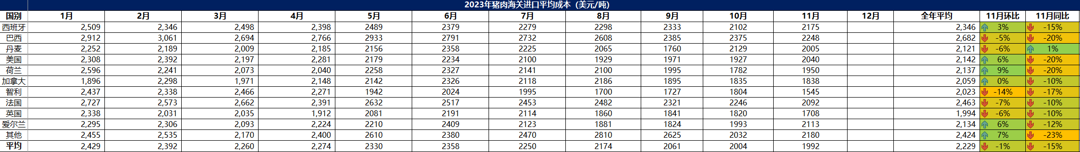 2023年11月冷凍豬肉進(jìn)口概況