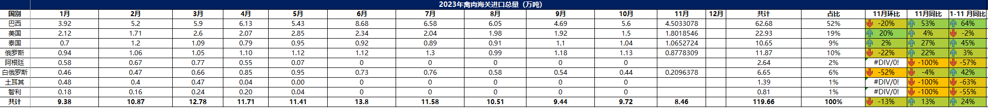 2023 年 11月冷凍禽肉進(jìn)口概況