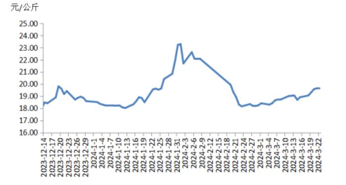 據(jù)農(nóng)業(yè)農(nóng)村部信息中心和山東卓創(chuàng)資訊股份有限公司聯(lián)合監(jiān)測,2024年第12周(即2024年3月18日-3月22日,以下簡稱本周),16省(直轄市)瘦肉型白條豬肉出廠價格總指數(shù)的周平均值為每公斤19.55元,環(huán)比上漲2.0%,同比上漲1.3%,同比由跌轉(zhuǎn)漲。
