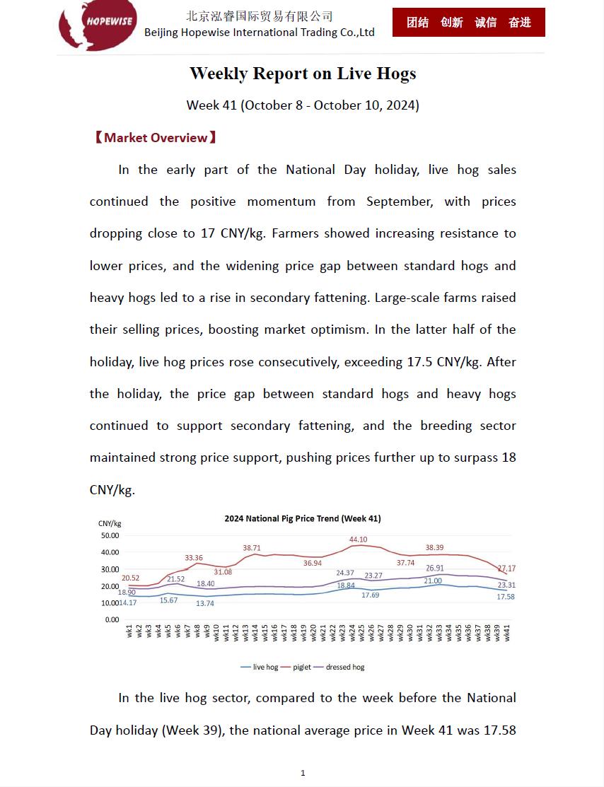 Weekly Report on Live Hogs WK41