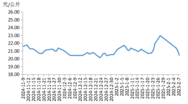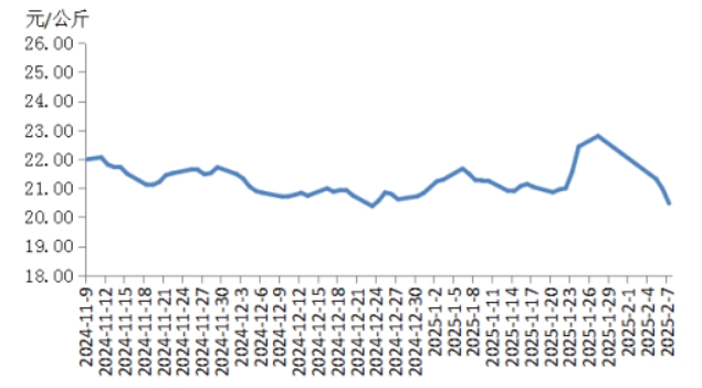 本周,廣東豬肉周均價(jià)為每公斤21.73元,環(huán)比上漲2.1%,同比上漲9.8%,較上周漲幅擴(kuò)大1.6個(gè)百分點(diǎn)。上周屠宰企業(yè)暫未開(kāi)工,豬肉供應(yīng)有限,屠宰企業(yè)有挺價(jià)情緒;同時(shí),外地返回廣東務(wù)工的人員尚未完全恢復(fù),廣東地區(qū)目前人流量相對(duì)較少,豬肉消費(fèi)暫時(shí)疲軟,使得豬肉價(jià)格較上周末小幅下跌后趨穩(wěn),仍高于上周均價(jià)??傮w看,本周廣東地區(qū)豬肉周均價(jià)環(huán)比上漲。